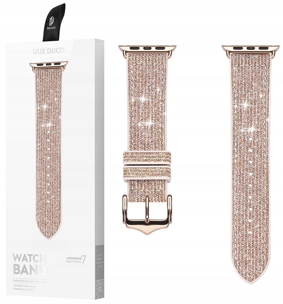 Lubisz błysk? Postaw na Dux Ducis Strap Sparkle Version. Ta wyjątkowa bransoleta doda szyku i blasku zegarkowi Apple Watch 8, 7, 6, SE, 5, 4, 3 i 2. Pasek został wykonany ze skóry PU i silikonu, dzięki czemu jest przyjazny dla skóry i wygodny. Zamontujesz go na kopercie bez żadnych problemów. Na nadgarstku wygląda naprawdę imponująco!