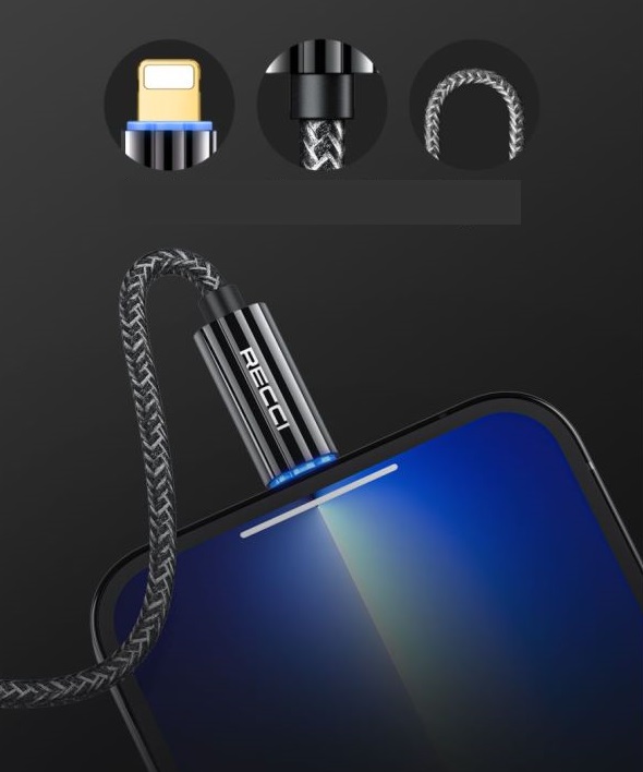 PODŚWIETLANY KABEL LIGHTNING 2.4A 1M WZMACNIANY OPLOT LED RECCI