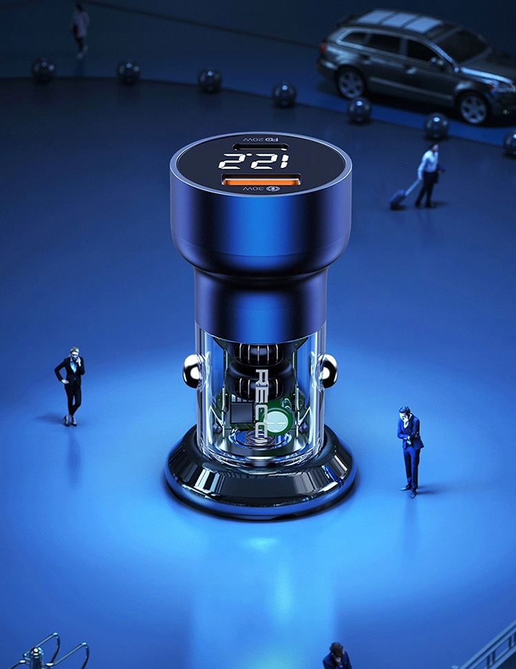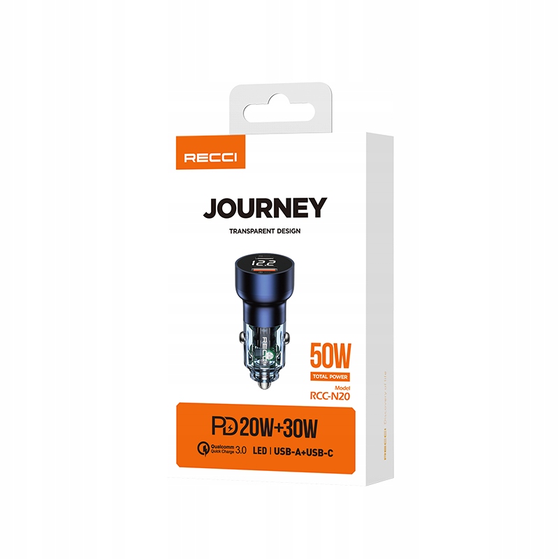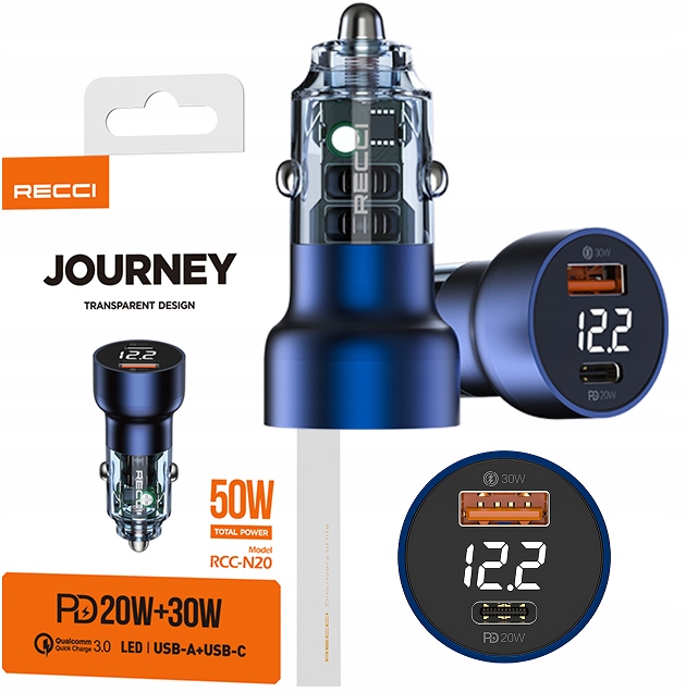 SUPER SZYBKA ŁADOWARKA SAMOCHODOWA LED USB-C TYP C i USB QC3.0 50W RECCI
