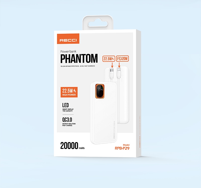 SZYBKI POWERBANK 20000MAH 22,5W QC 3.0 PD + KABEL LIGHTNING USB-C RECCI