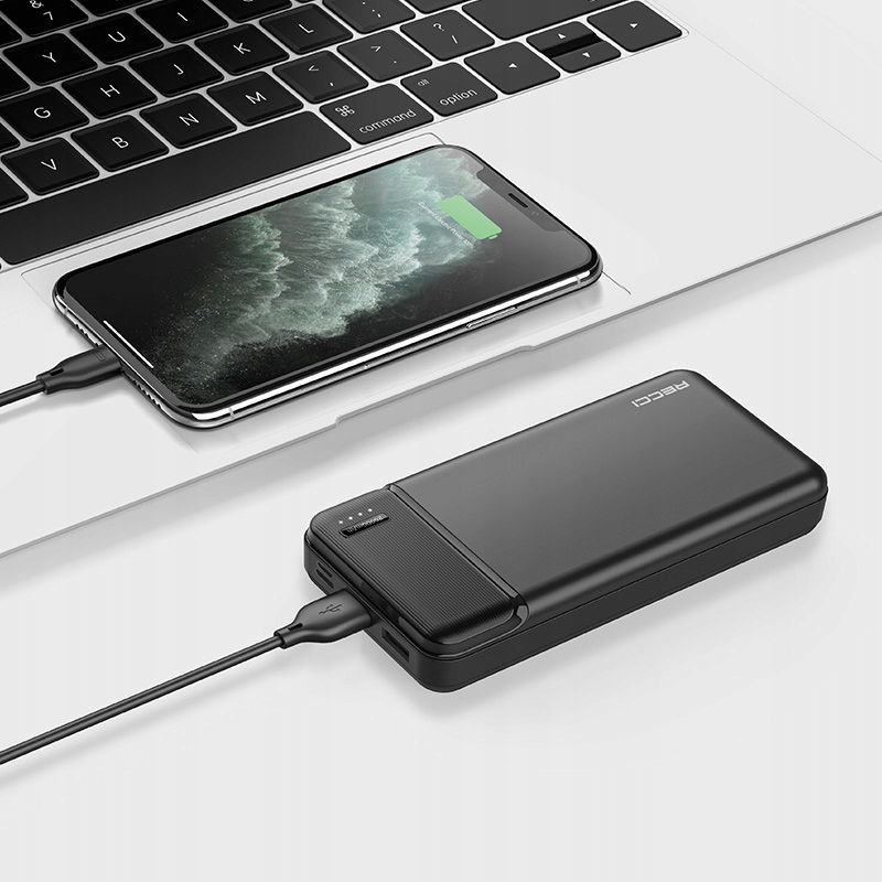 SZYBKI POWERBANK 20000MAH MOCNY SZYBKIE ŁADOWANIE 2,1A USB C + KABEL RECCI