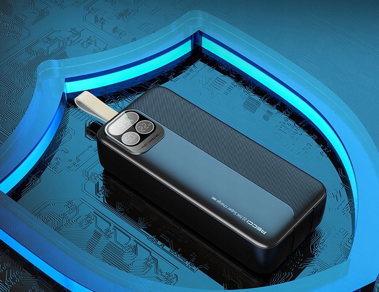 SZYBKI POWERBANK 30000MAH 22,5W 3A PD Z WBUDOWANYMI KABLAMI Z EKRANEM RECCI