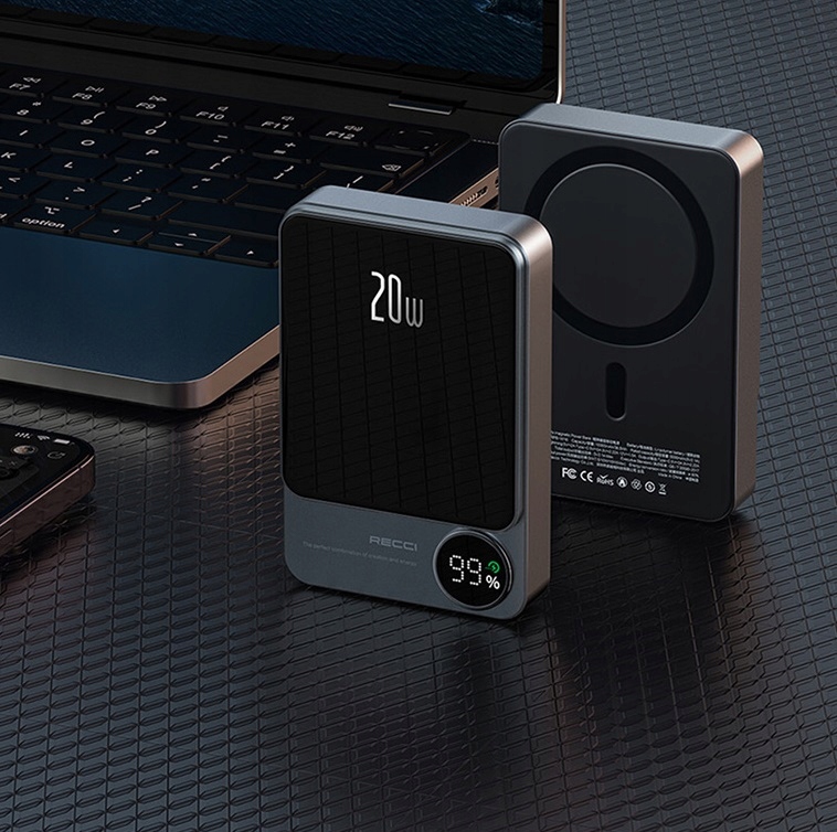 Powerbank RECCI został wyposażony w technologię kompatybilną z MAGSAFE dzięki czemu używanie Powerbanka stało się jeszcze bardziej wygodne. Zapomnij o kablach w czasie podróży, dzięki bardzo silnym magnesom telefon zawsze idealnie przylega do powerbanka a ty możesz zapomnieć o rozładowanej baterii.