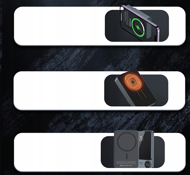 SZYBKI POWERBANK DO MAGSAFE BEZPRZEWODOWY 10000 MAH Z EKRANEM LED 20W PD