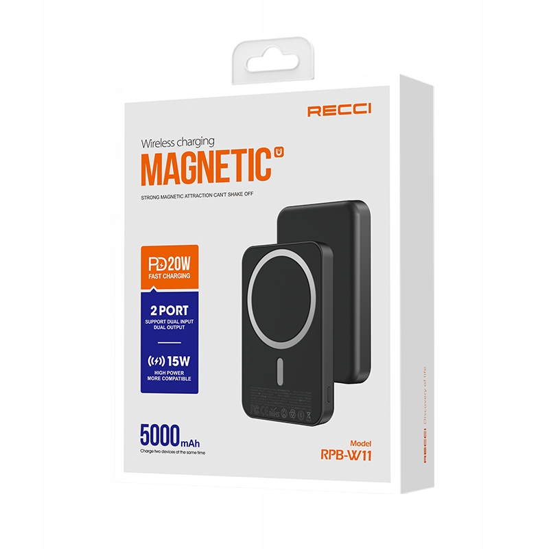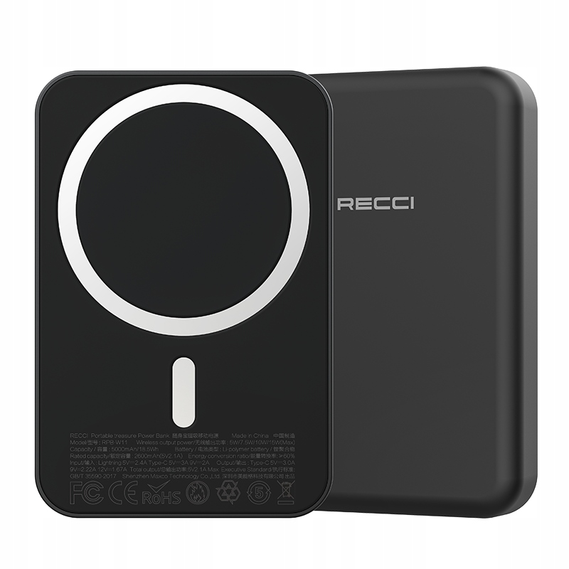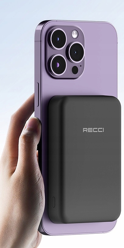 Powerbank RECCI został wyposażony w technologię kompatybilną z MAGSAFE dzięki czemu używanie Powerbanka stało się jeszcze bardziej wygodne. Zapomnij o kablach w czasie podróży, dzięki bardzo silnym magnesom telefon zawsze idealnie przylega do powerbanka a ty możesz zapomnieć o rozładowanej baterii.