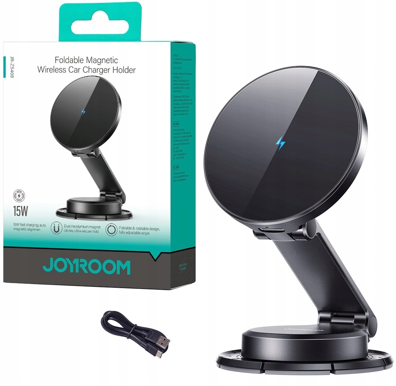 Uchwyt Joyroom JR-ZS408 magnetyczny z ładowarką indukcyjną 15W na kokpit samochodowy - czarny
